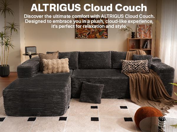 【2 Package Shipping】Ovios 104" Cloud Sectional Couch with L-Shaped Chaise, Modern Modular Design, No Assembly Required, Plush Corduroy Cloud Velvet Fabric, 2 Pieces