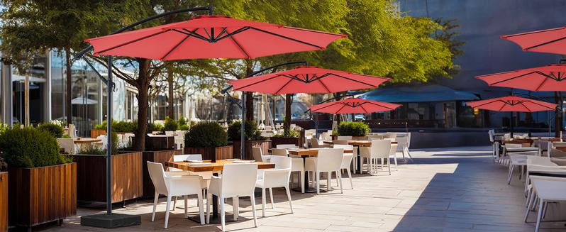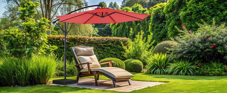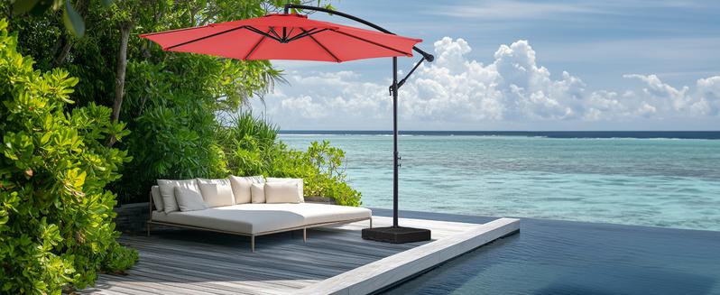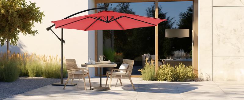 - Premium Canopy Material: Made with high- qualitypolyester fabric,the cantilever umbrella providesUPF50+sun protection and resists fading over time.Please store the offset umbrella indoors during extremeweather conditions for longevity.