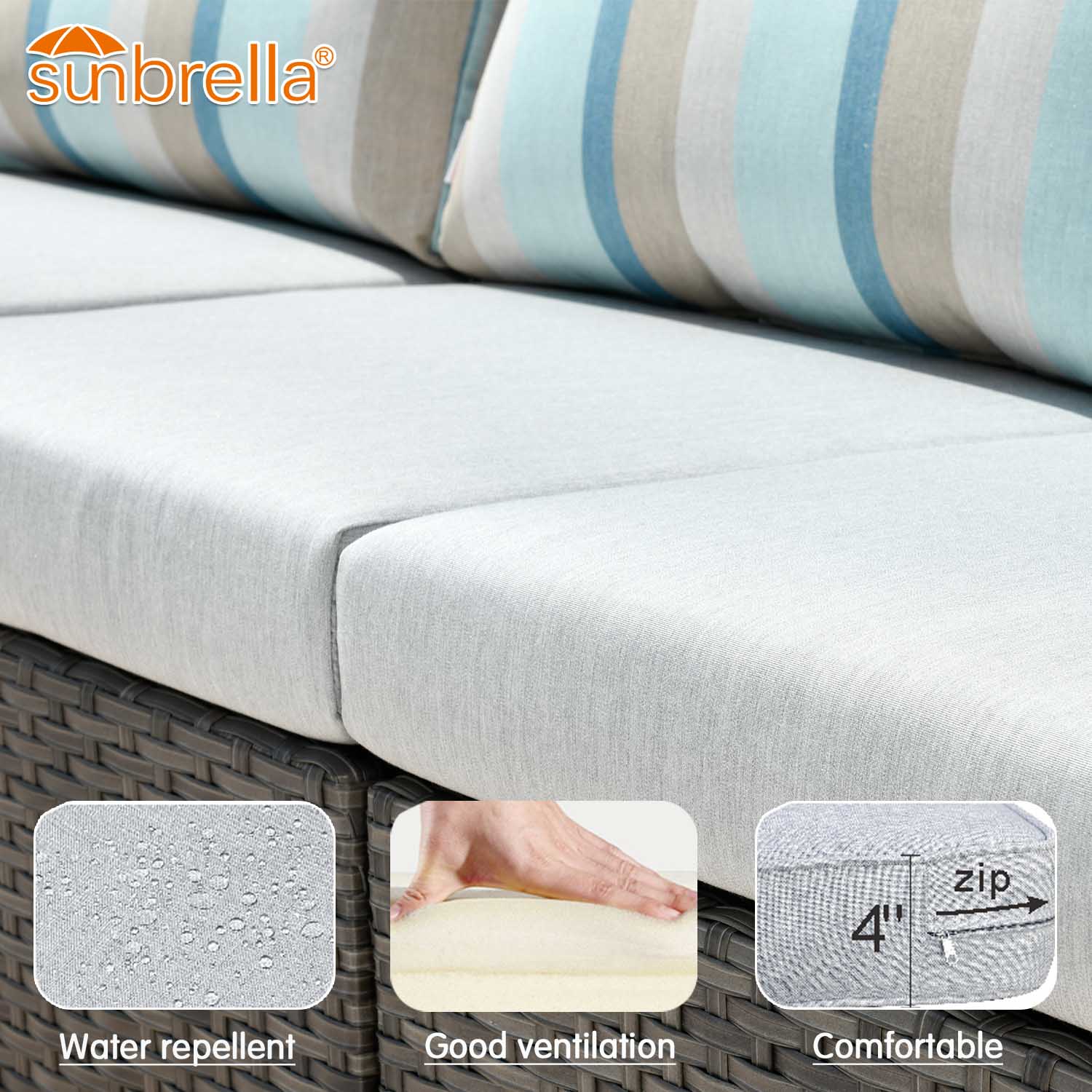 Soft & Cozy Fabric: The fabric material is sunbrella. which is durable to withstand continuous exposure to sunlight. rain and wind. making it suitable to stylish your outdoor space.