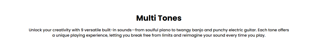 9 Built-in Tones: From soulful piano to twangy banjo and punchy electric guitar—each tone offers a unique playing experience.