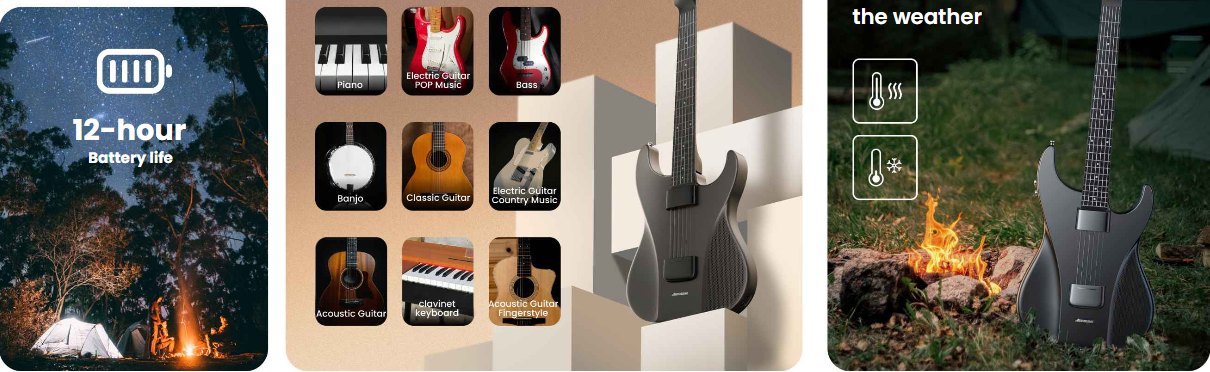 More Than a Guitar: Built-in speaker, mic port, drum loops, and one-touch capo key—play anywhere without amps, pedals, or cables.